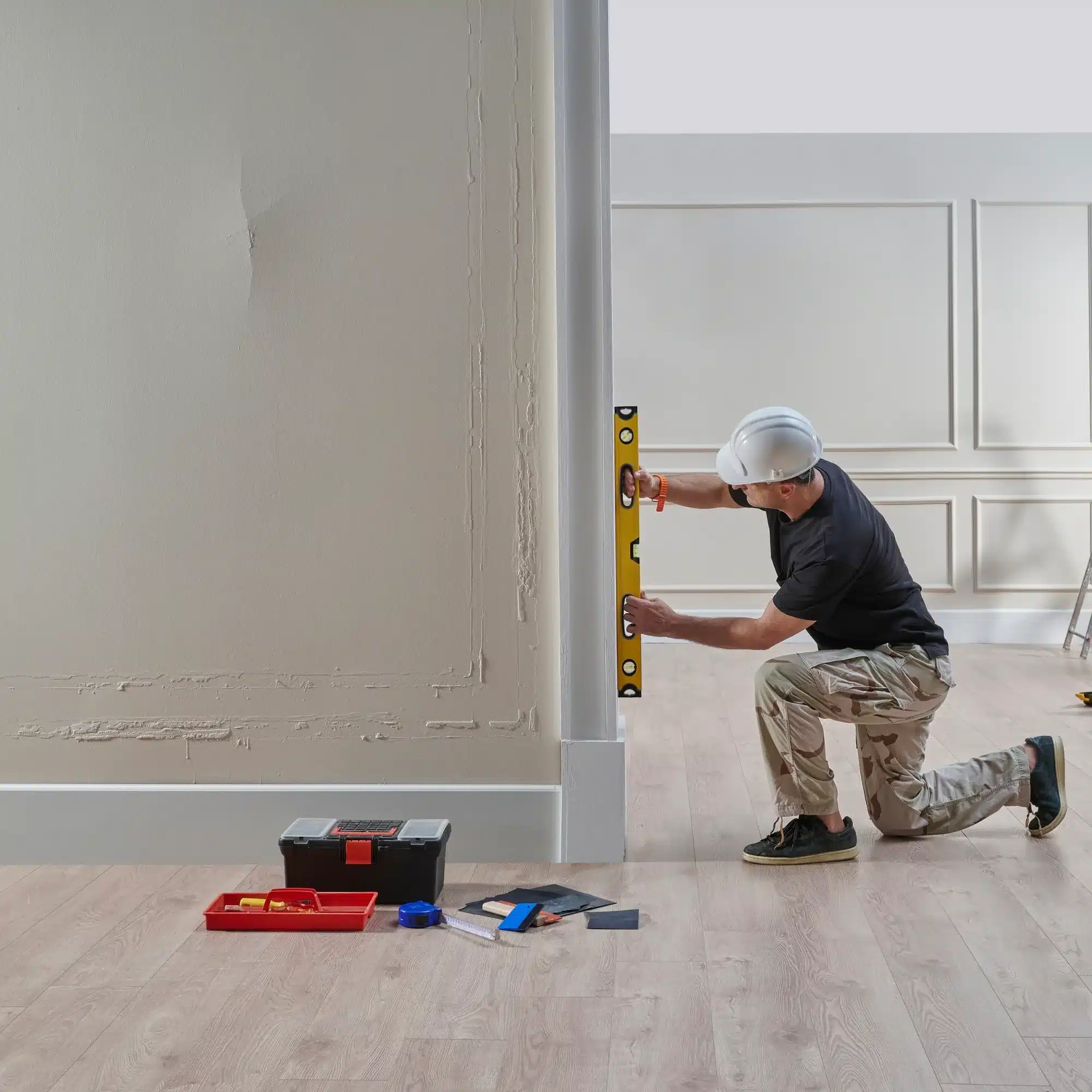 La pose de ces revêtements exige une préparation minutieuse du support. Notre savoir-faire inclut le ragréage des sols, indispensable pour obtenir une surface parfaitement plane. Les étagères murales et autres éléments de rangement sont fixés solidement pour supporter le poids des objets qu’ils accueilleront. Cette rigueur dans la préparation garantit la longévité de vos aménagements et évite les désordres ultérieurs.